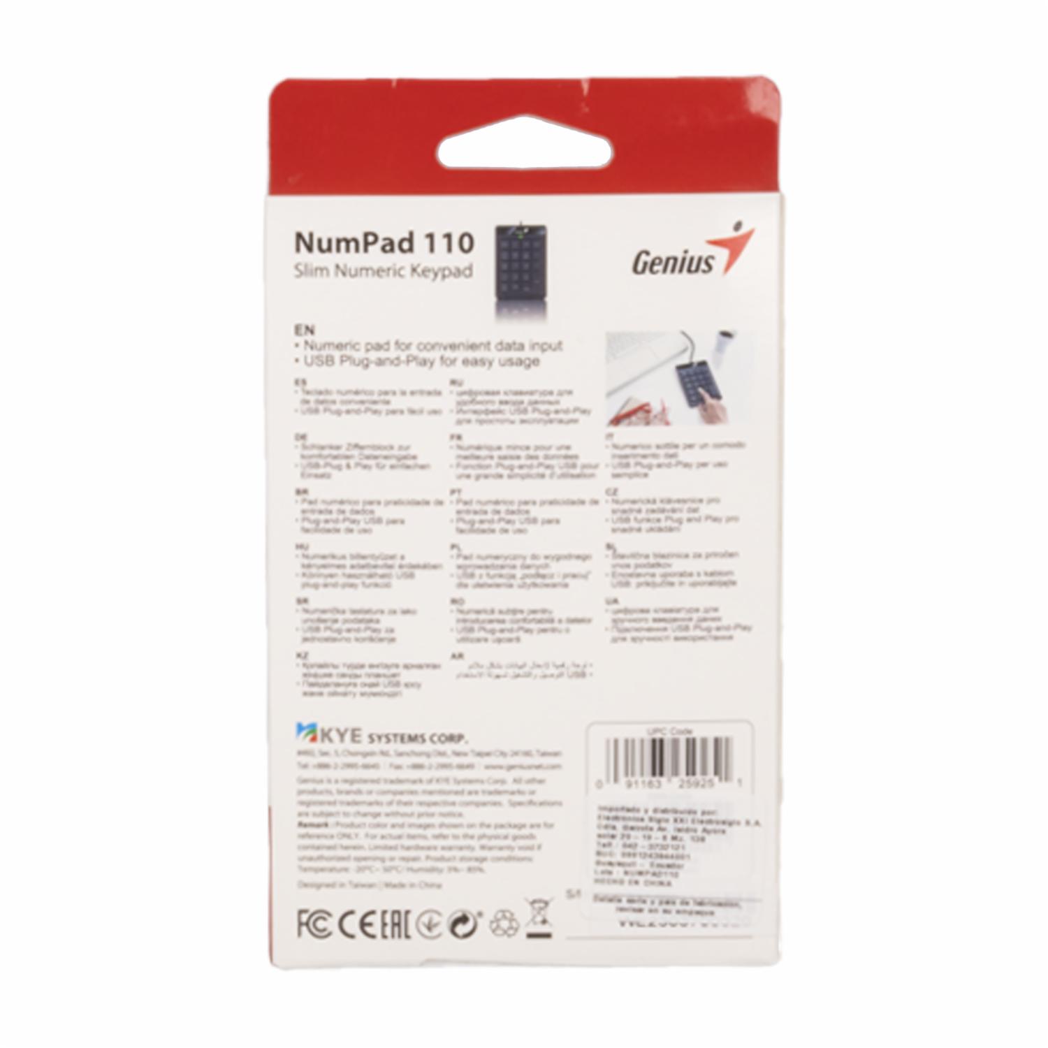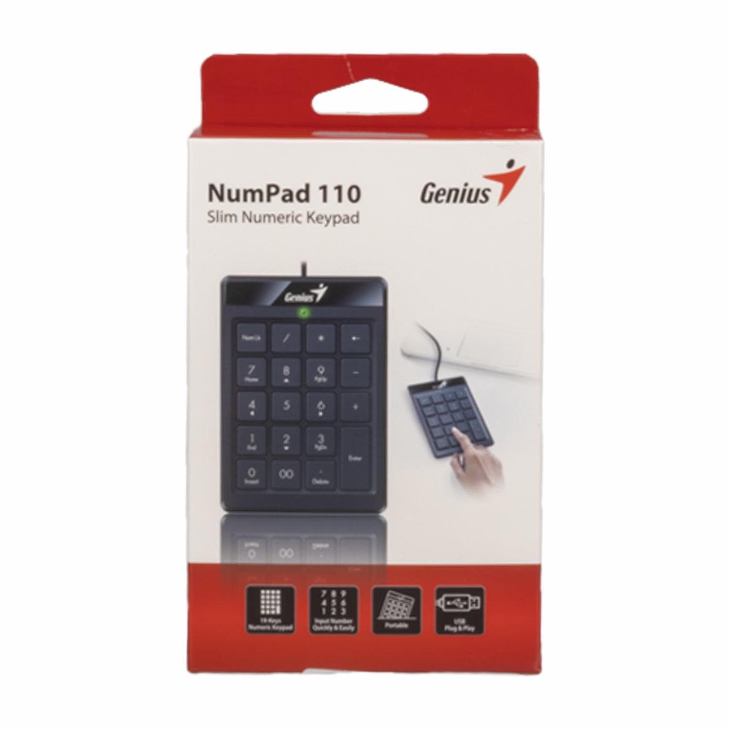 Teclado Numérico Numpad 110 USB Negro GENIUS Con Cable – GENIUS. Disponible en nuestros locales. Precio y stock pueden variar según la tienda.